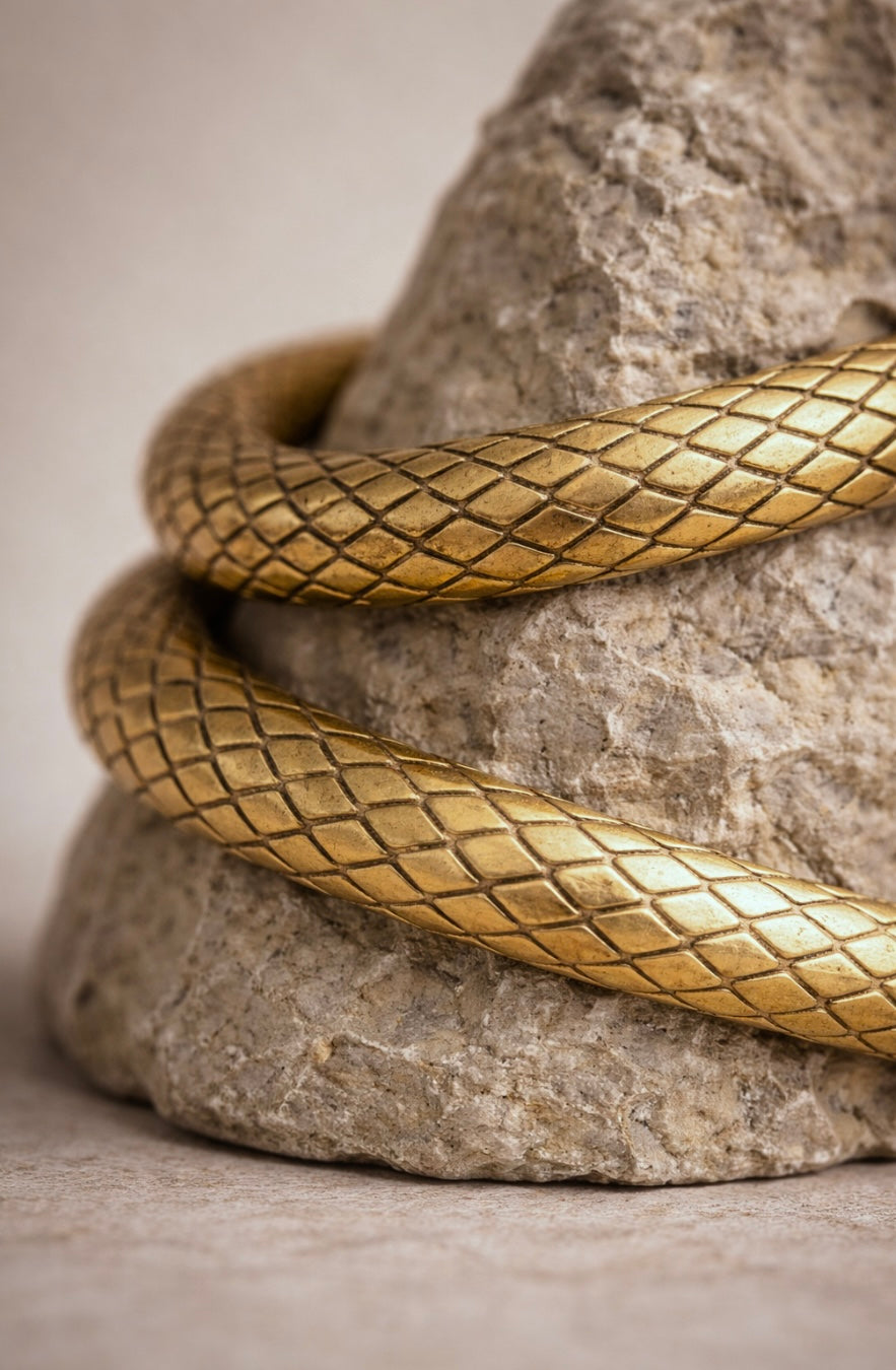 Inspired by ancient traditions where the snake was revered as an oracle, The Oracle Hiss becomes our latest symbolic hardware, an icon of intuition and inner knowing. It reminds us that some truths don’t arrive as explanations, but as whispered feelings, soft, instinctive, impossible to ignore.