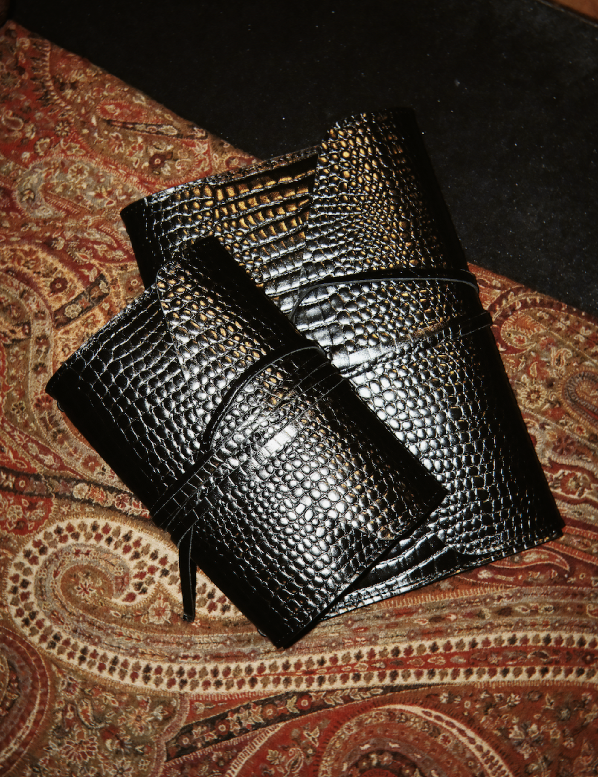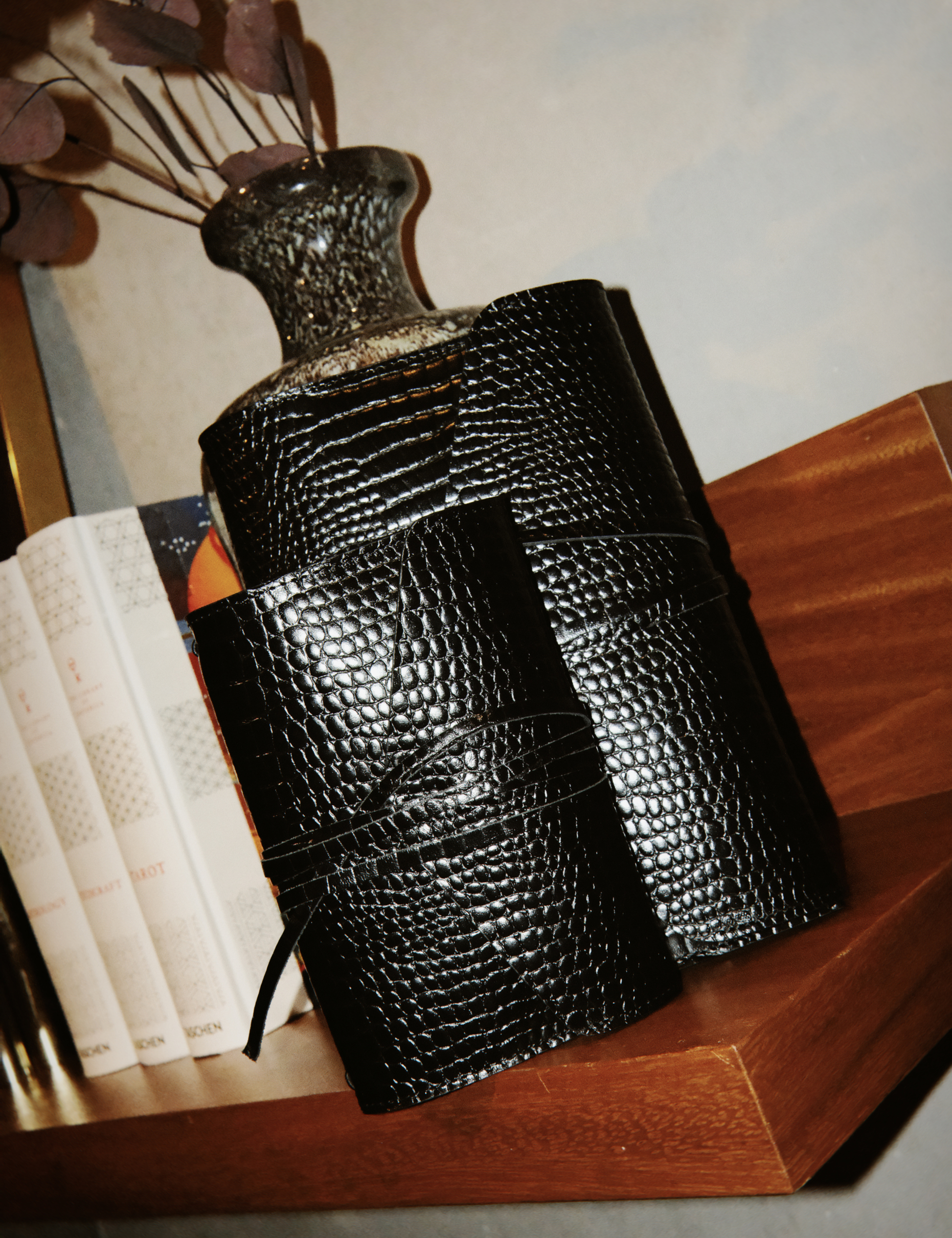 The lizard-embossed leather gives it a bold, lush, and luxurious presence. One you’ll want to keep right next to you.
