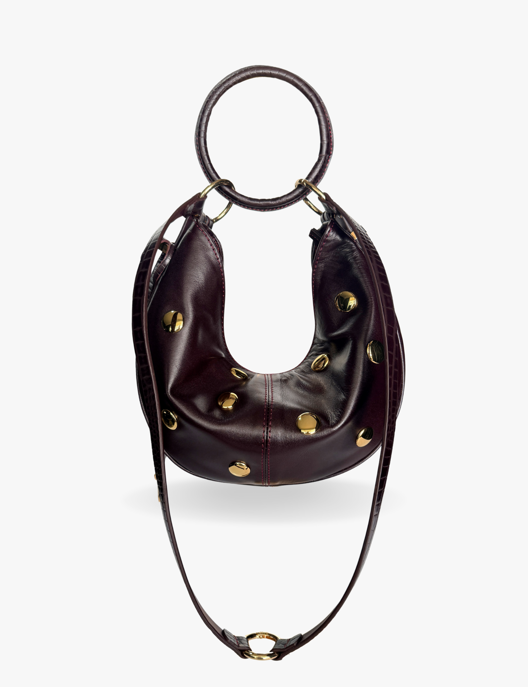 A new gesture for an icon. Our Hobo now features a sculptural 10 cm leather-wrapped ring, anchored by 3 golden rings for a fluid, seamless connection. Designed to be carried as a handbag, it can also be paired with its long strap for an easy crossbody moment. The large ring is fully removable.