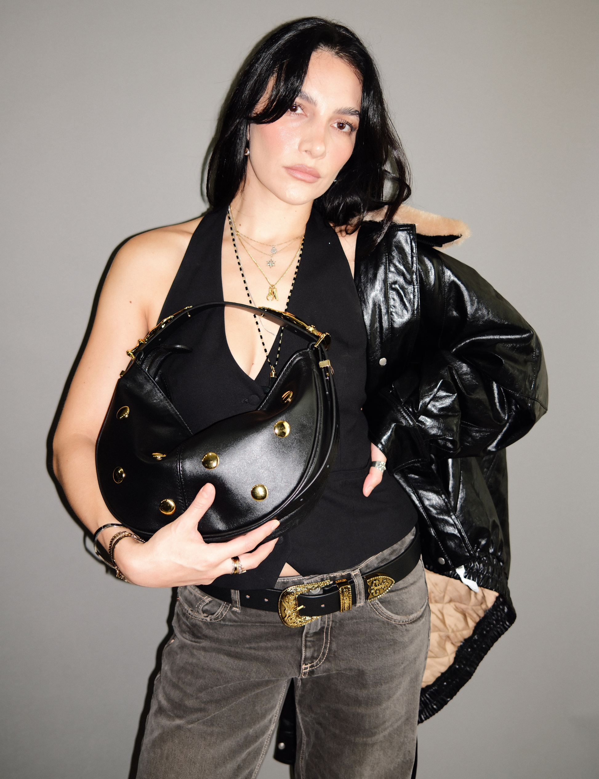 With its relaxed silhouette and a touch of bohemian flair, this slouchy bag is ideal for those who appreciate fashion with a carefree air. Crafted from the highest quality leather, it is not only spacious and practical, but also a timeless piece that complements any style. The intricate and alluring hand-shaped hardware is inspired by palm reading and will surely captivate the imaginations of all who behold it.