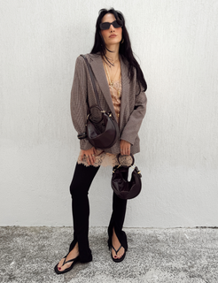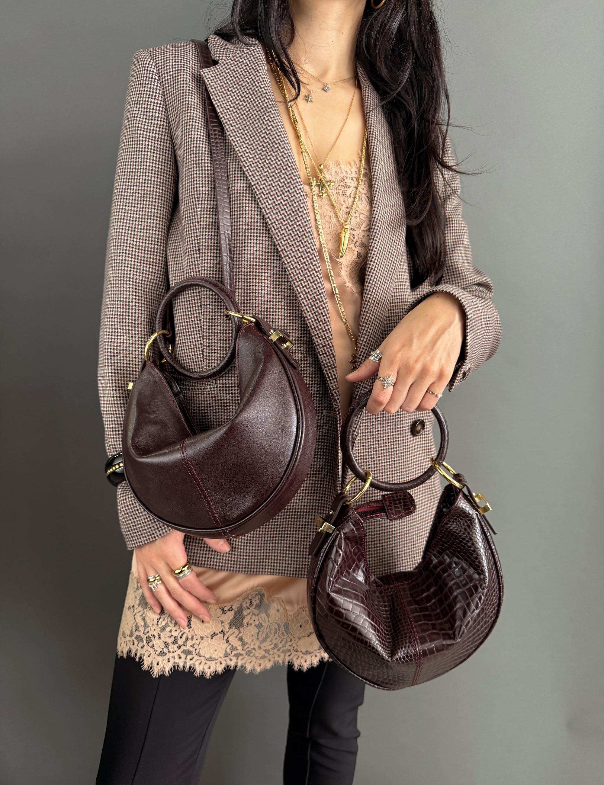 A new gesture for an icon. Our Hobo now features a sculptural 10 cm leather-wrapped ring, anchored by 2 golden rings for a fluid, seamless connection. Designed to be carried as a handbag, it can also be paired with its long strap for an easy crossbody moment. The large ring is fully removable.