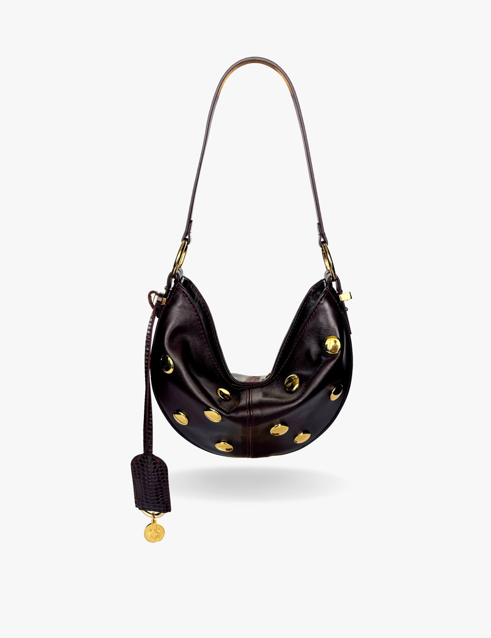 A new gesture for an icon. Our Hobo now features a sculptural 10 cm leather-wrapped ring, anchored by 3 golden rings for a fluid, seamless connection. Designed to be carried as a handbag, it can also be paired with its long strap for an easy crossbody moment. The large ring is fully removable.