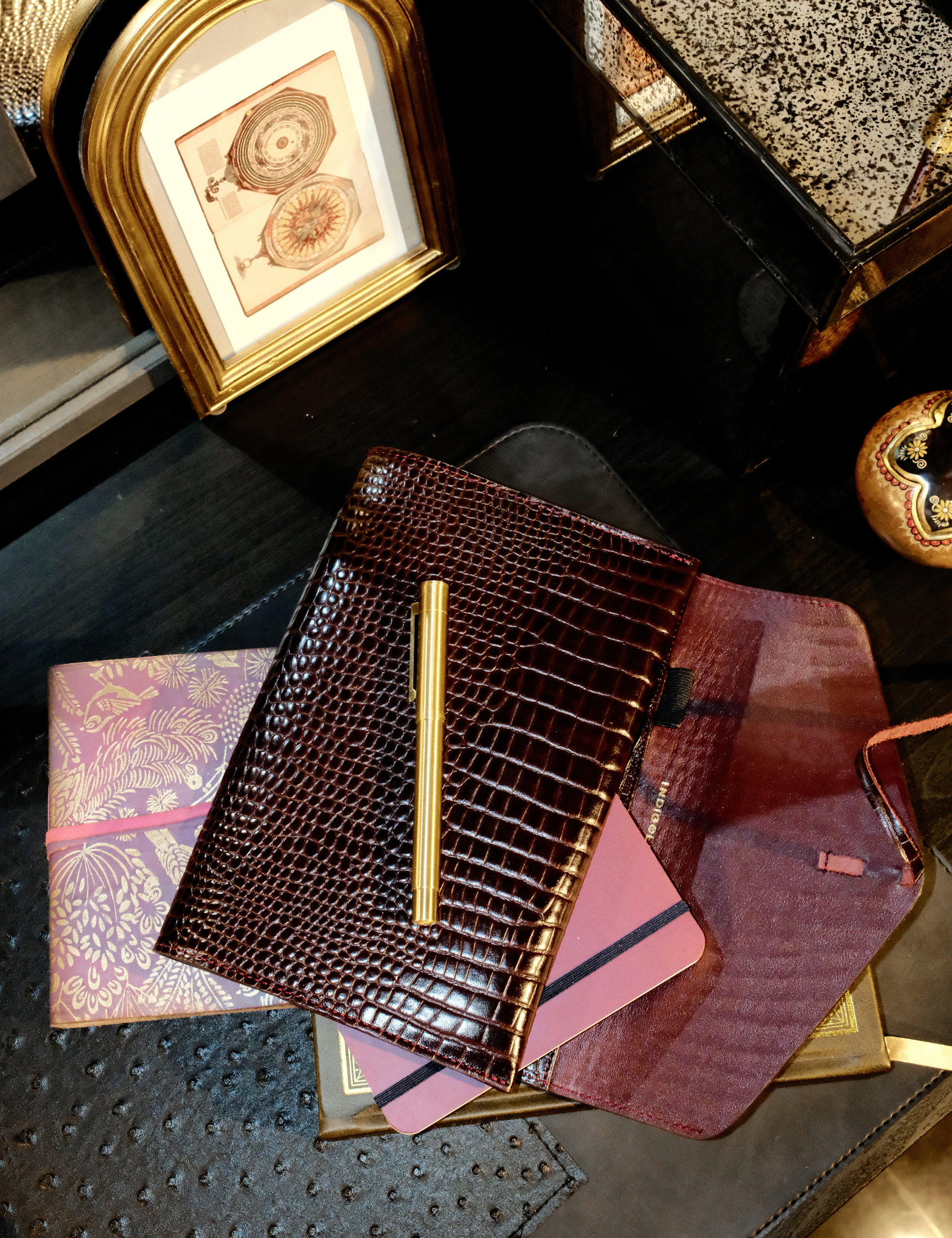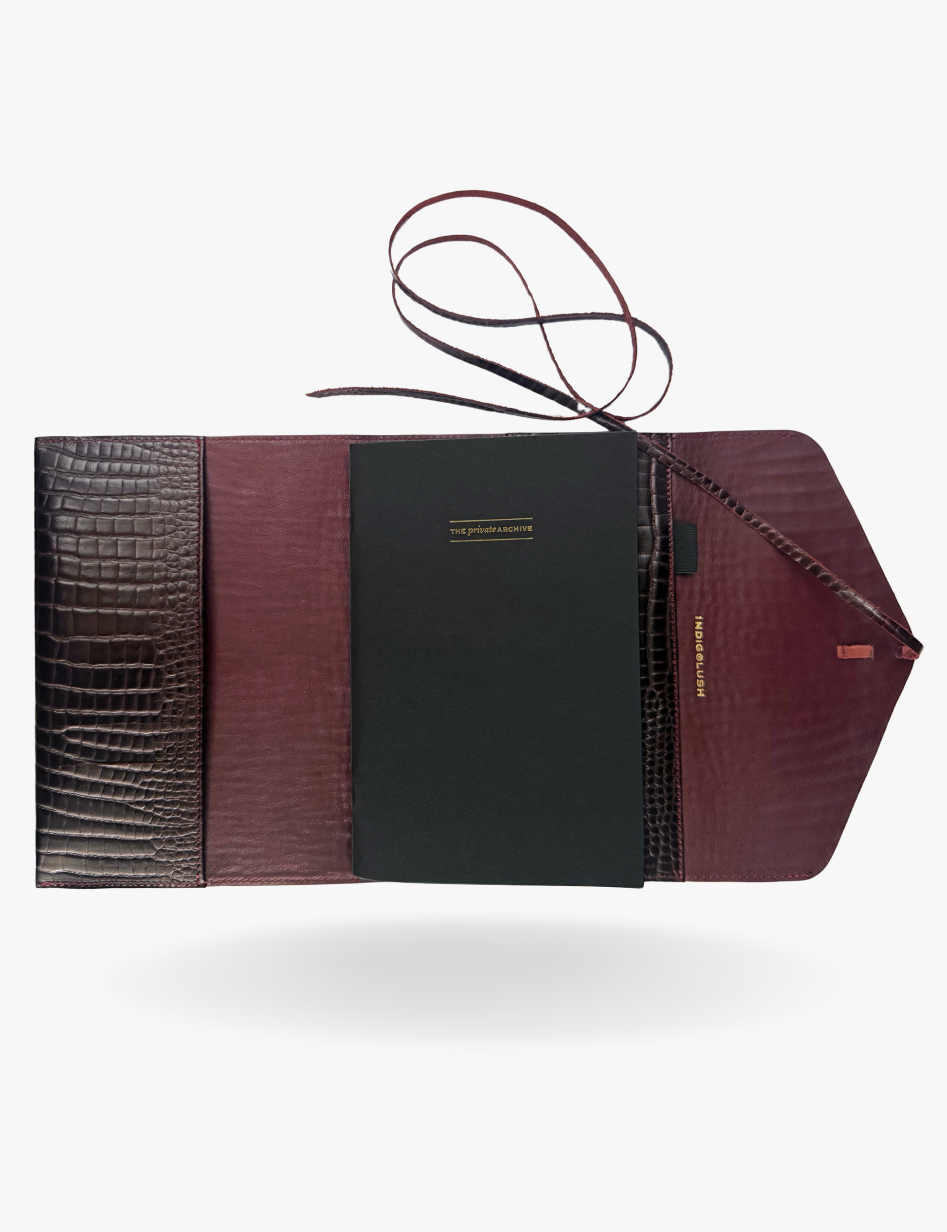 A quiet space for your thoughts, spells & rituals.Crafted in textured bovine leather, this portfolio opens into t...