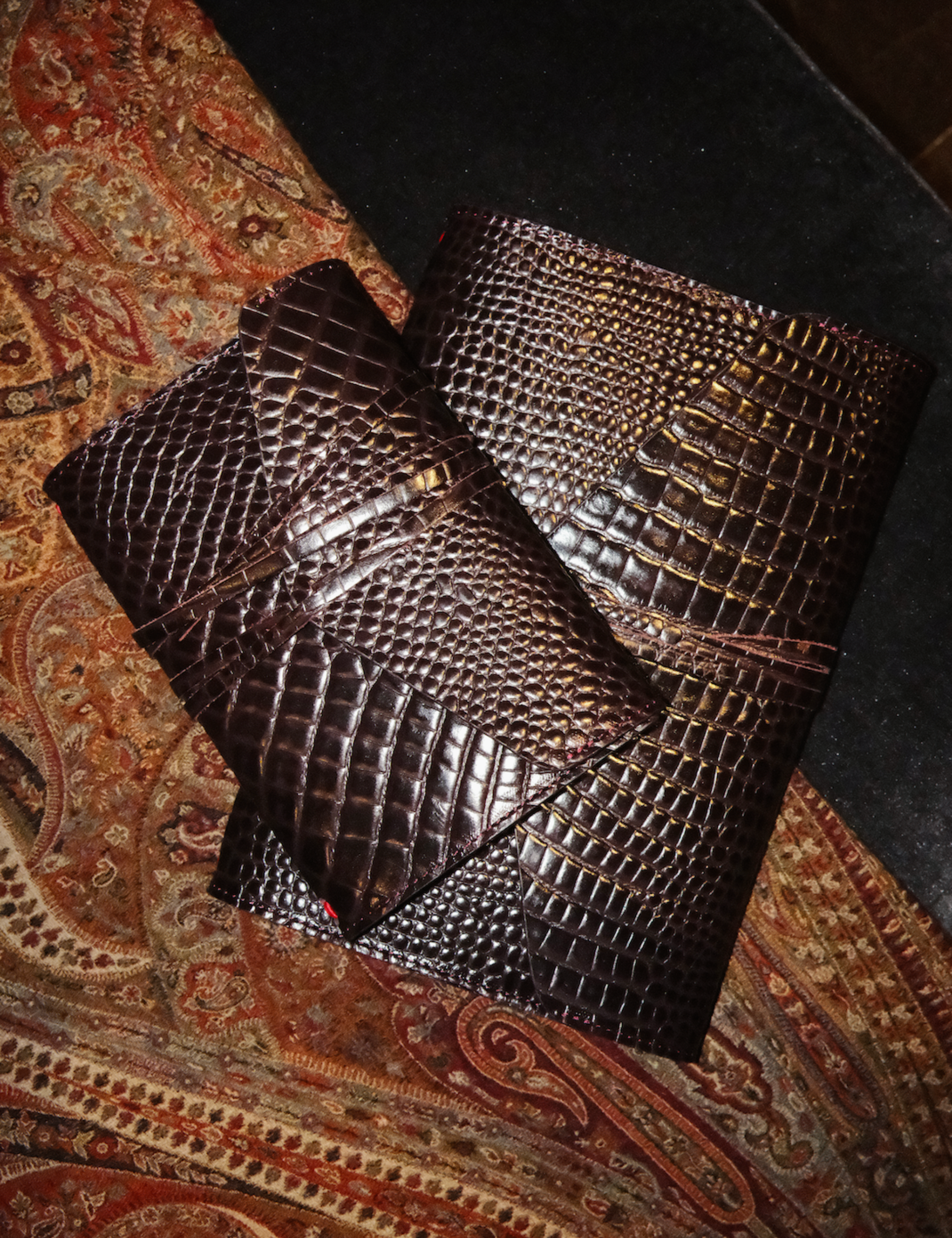 The lizard-embossed leather gives it a bold, lush, and luxurious presence. One you’ll want to keep right next to you.